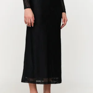 24COLOURS Textured Pencil Long Skirt | Black