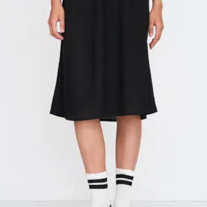 Skirt from structural fabric in black colour and viscose-mix fabric.