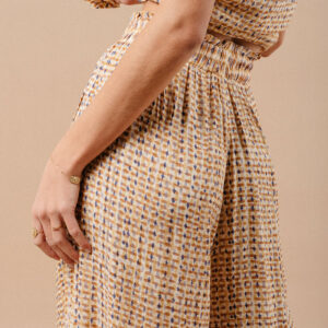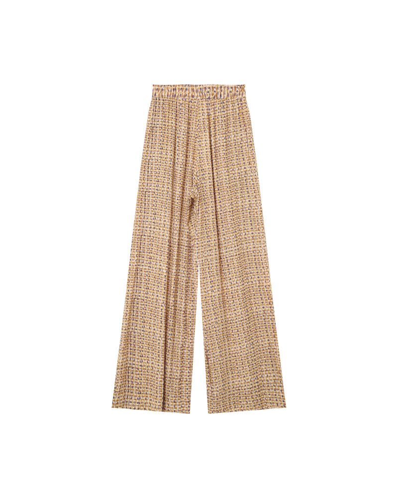 The silhouette: We love these MASHA wide-leg trousers with elasticated waistband, which are ultra comfortable and elegant to wear. We love their light, fluid fabric, perfect for warmer days. We love their casual style and elegant cut, making the MASHA trousers ideal for any occasion. The exclusive Grace & Mila print, inspired by Mediterranean style, makes these trousers unique and a real gem to add to your wardrobe. This piece in 100% Grace & Mila rayon proudly joins our “”Un brin de vert”” range in natural fibres.