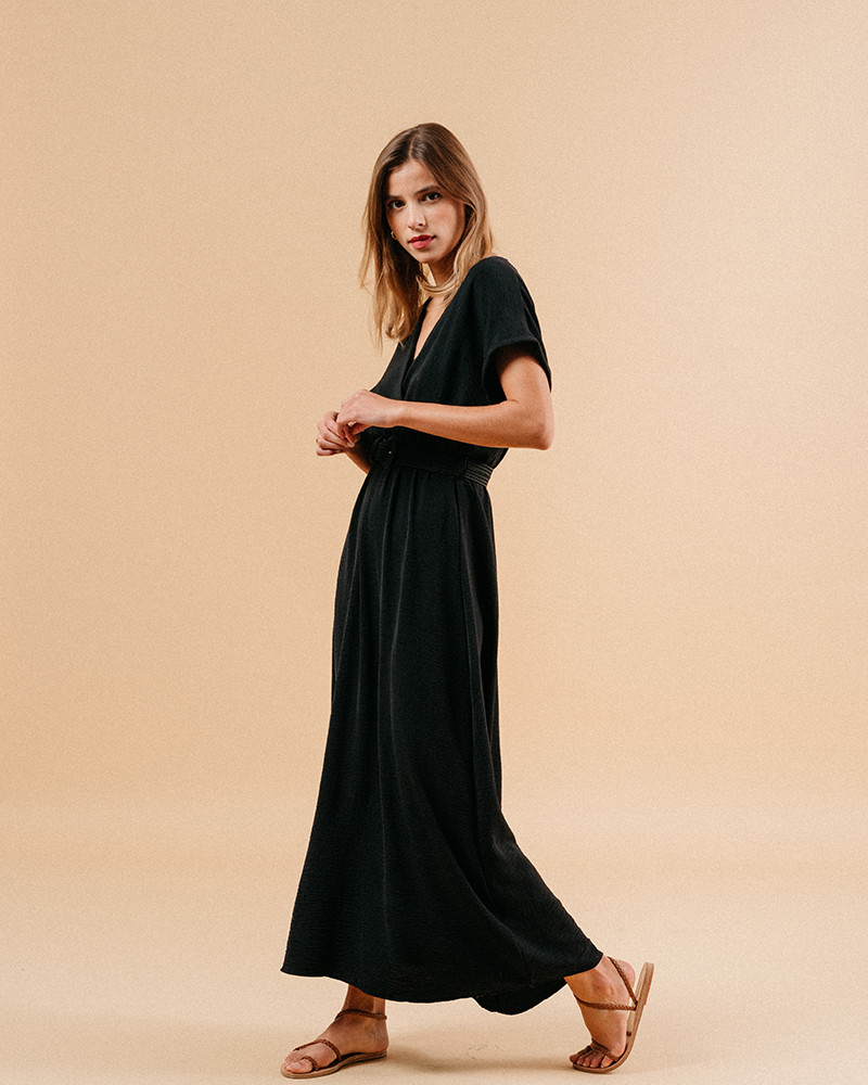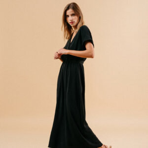 The silhouette: The MAUD maxi dress with its elasticated waist is the perfect blend of femininity and comfort. We love the light, flowing fabric that gently hugs your curves and the waist belt that enhances your silhouette. Its short sleeves reveal your arms to let them soak up the sun on a hot summer’s day. The MAUD maxi dress joins our “”Collective”” range, a certified 100% eco-responsible line.