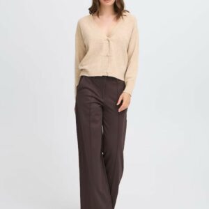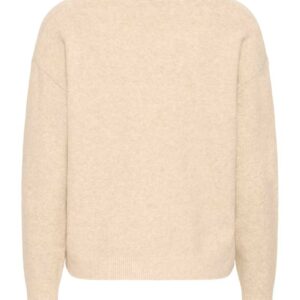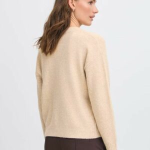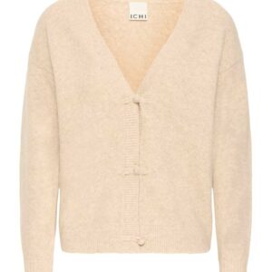 ICHI IHDASILA women’s V-neck cardigan features a relaxed fit, subtle knot button closure and long sleeves, offering comfort and modern style for versatile, everyday wear in oatmeal melange colour.