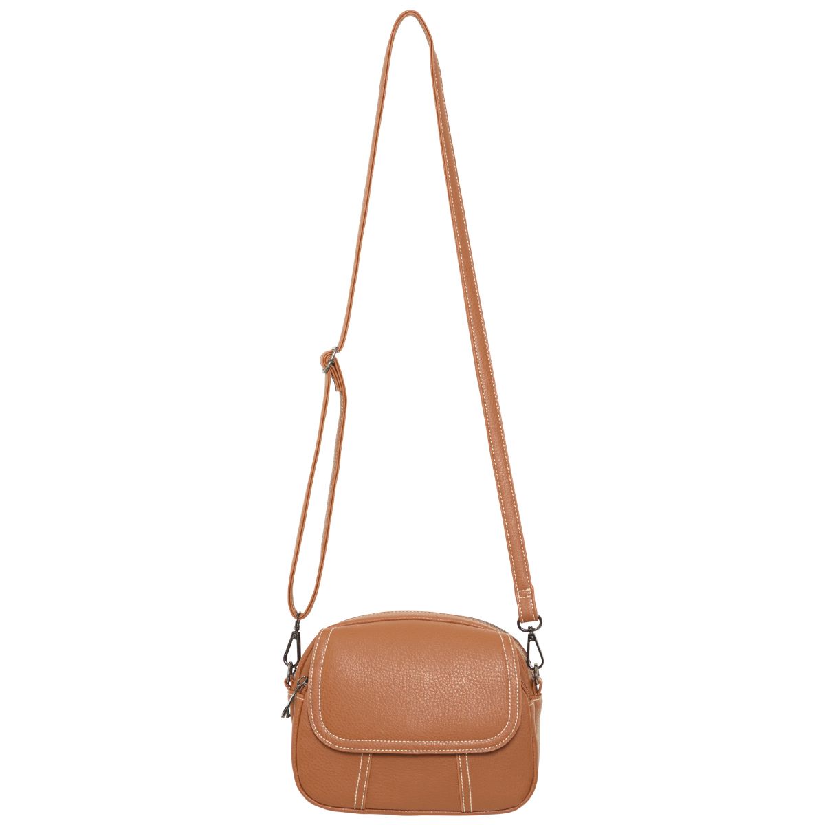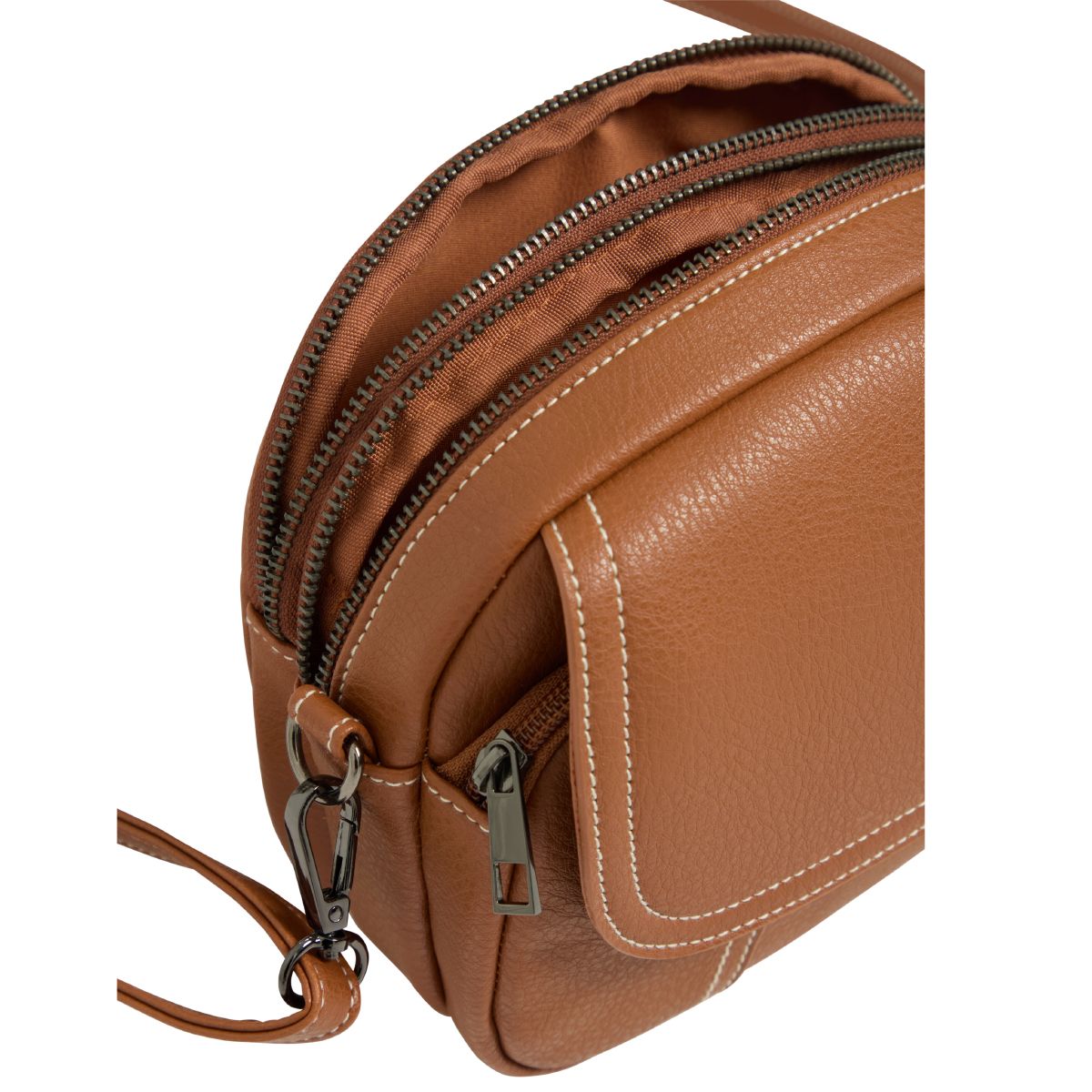 CHI IAKALA shoulder bag has two exposed zip compartments and one covered zip compartment in the front. Spacious and discreet with an adjustable and removable strap in cognac colour. For versatile -shoulder or crossbody- wearing.