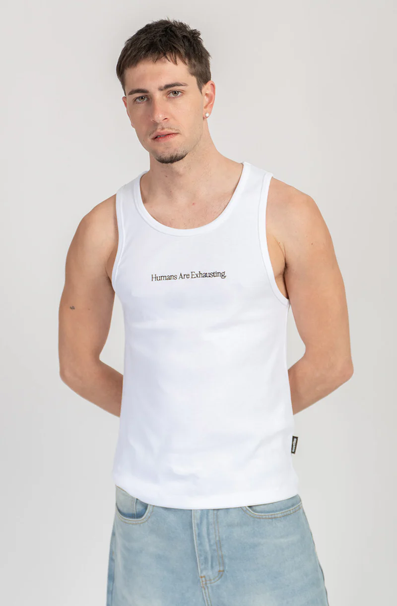 KAOTIKO White Tank Top Humans Are Exhausting.