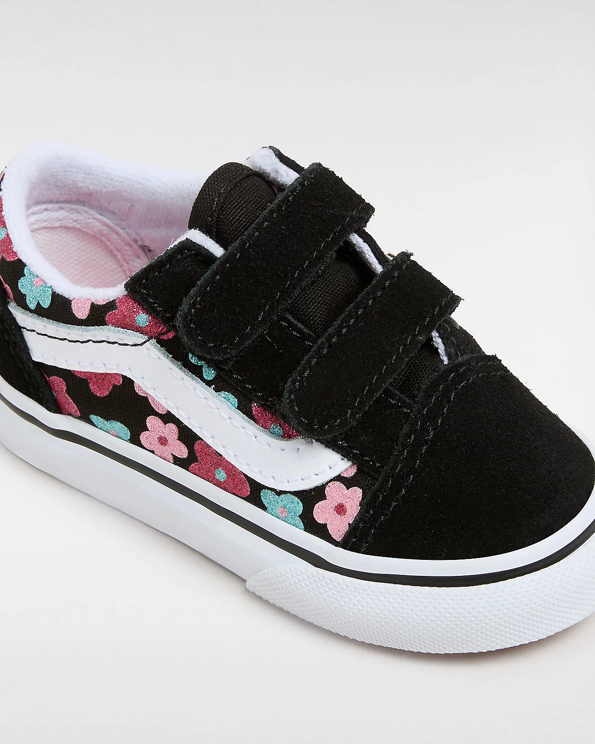 The Toddlers Old Skool V reimagines our iconic Sidestripe shoe by swapping traditional laces for double hook-and-loop closures. This low-top style maintains its classic appeal while providing an easy, secure fit that will keep your little one comfortable all day.