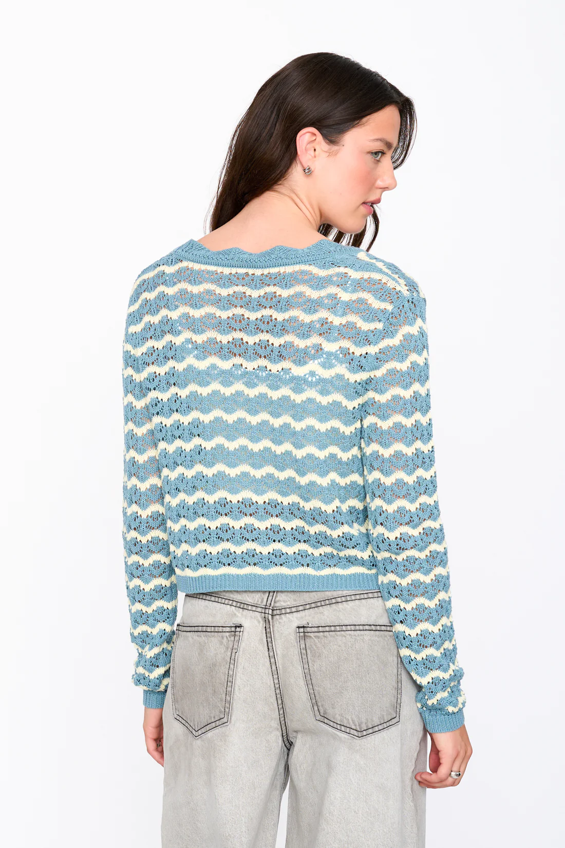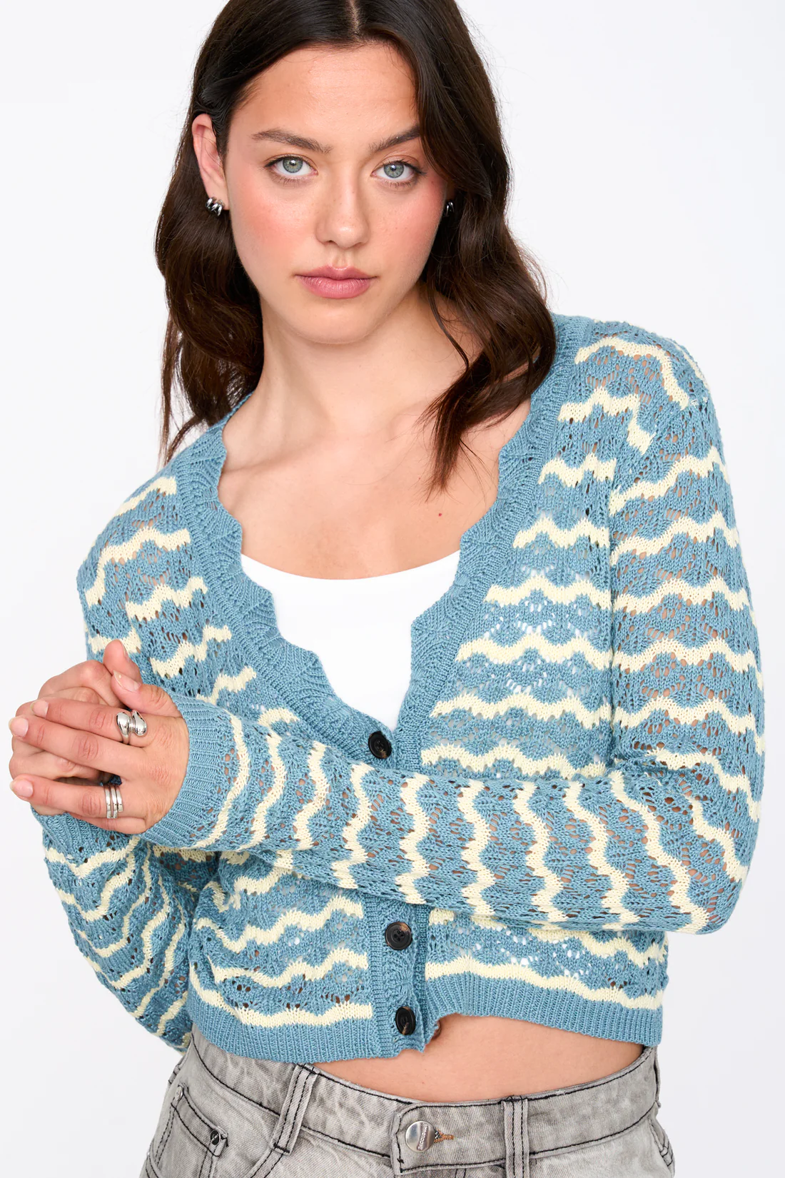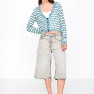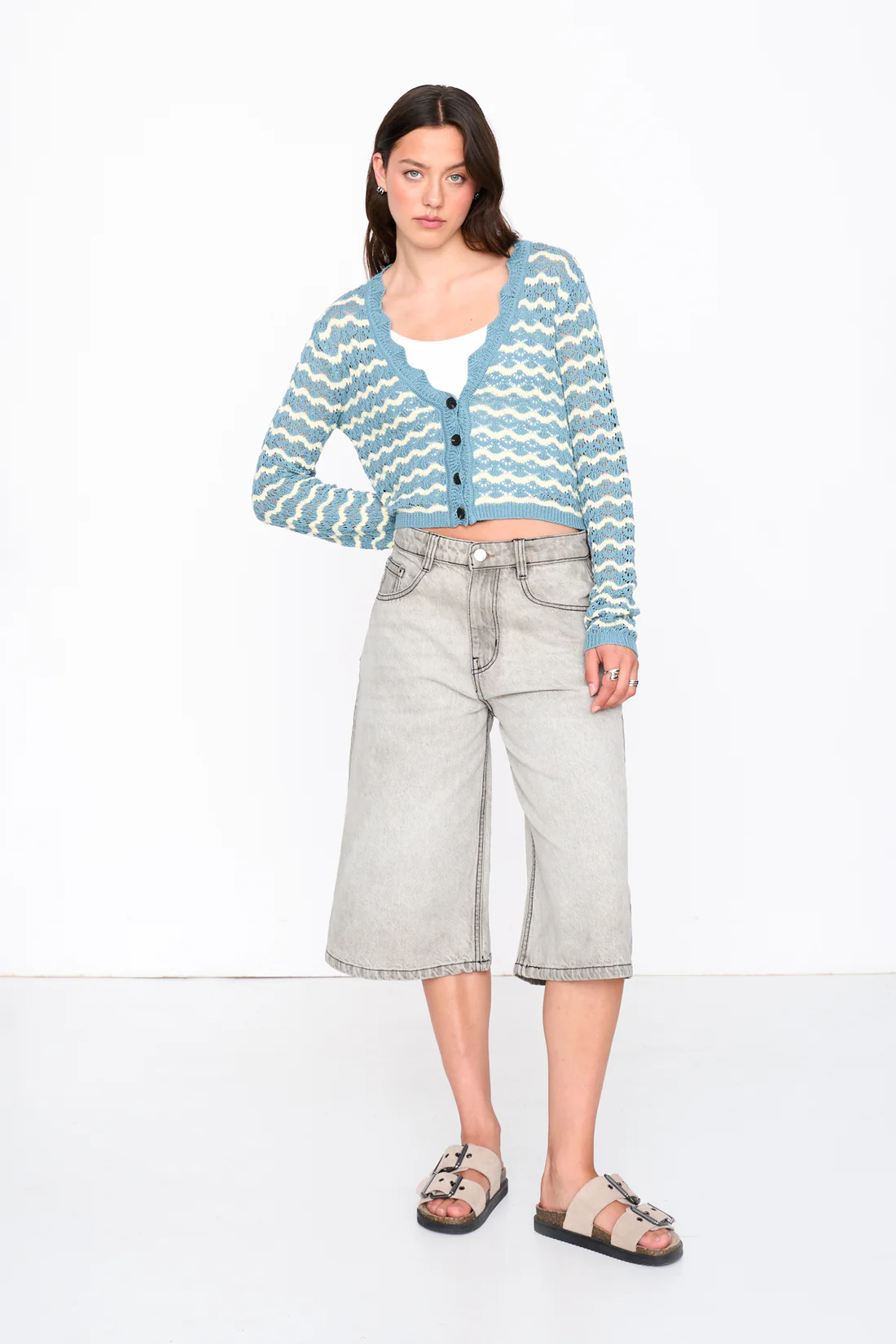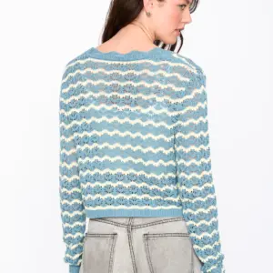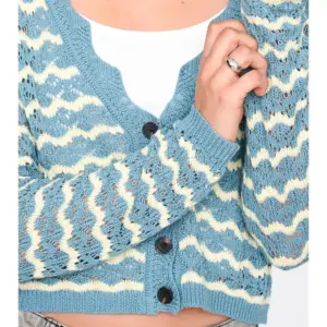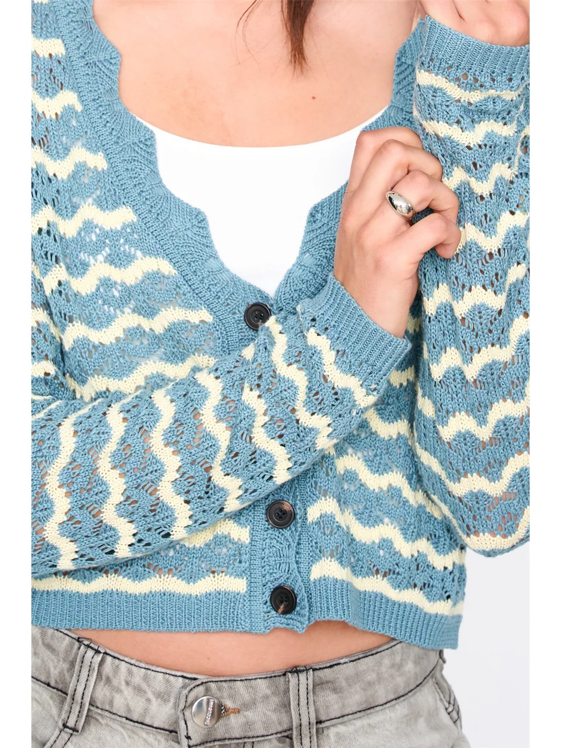 24COLOURS Lovely, slightly cropped, striped knit cardigan in blue and off-white colour.