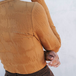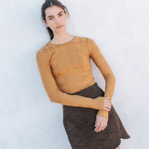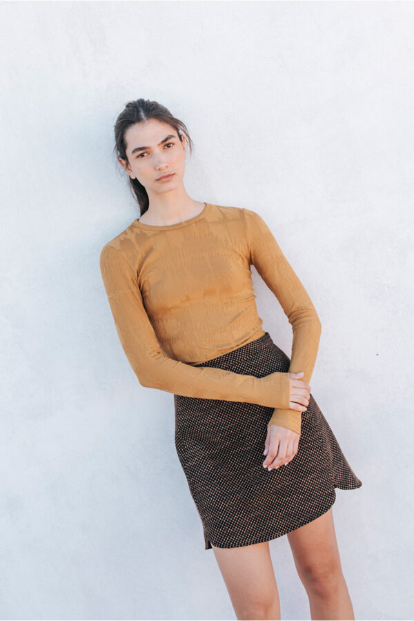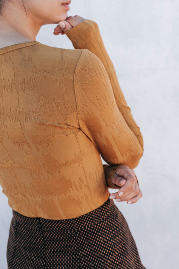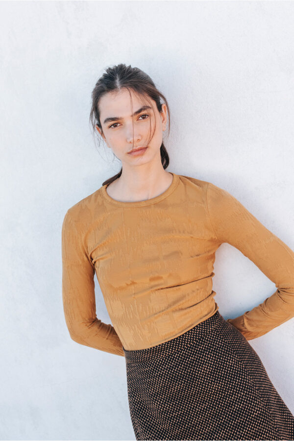 Jacquard top with long sleeves and a round neckline.