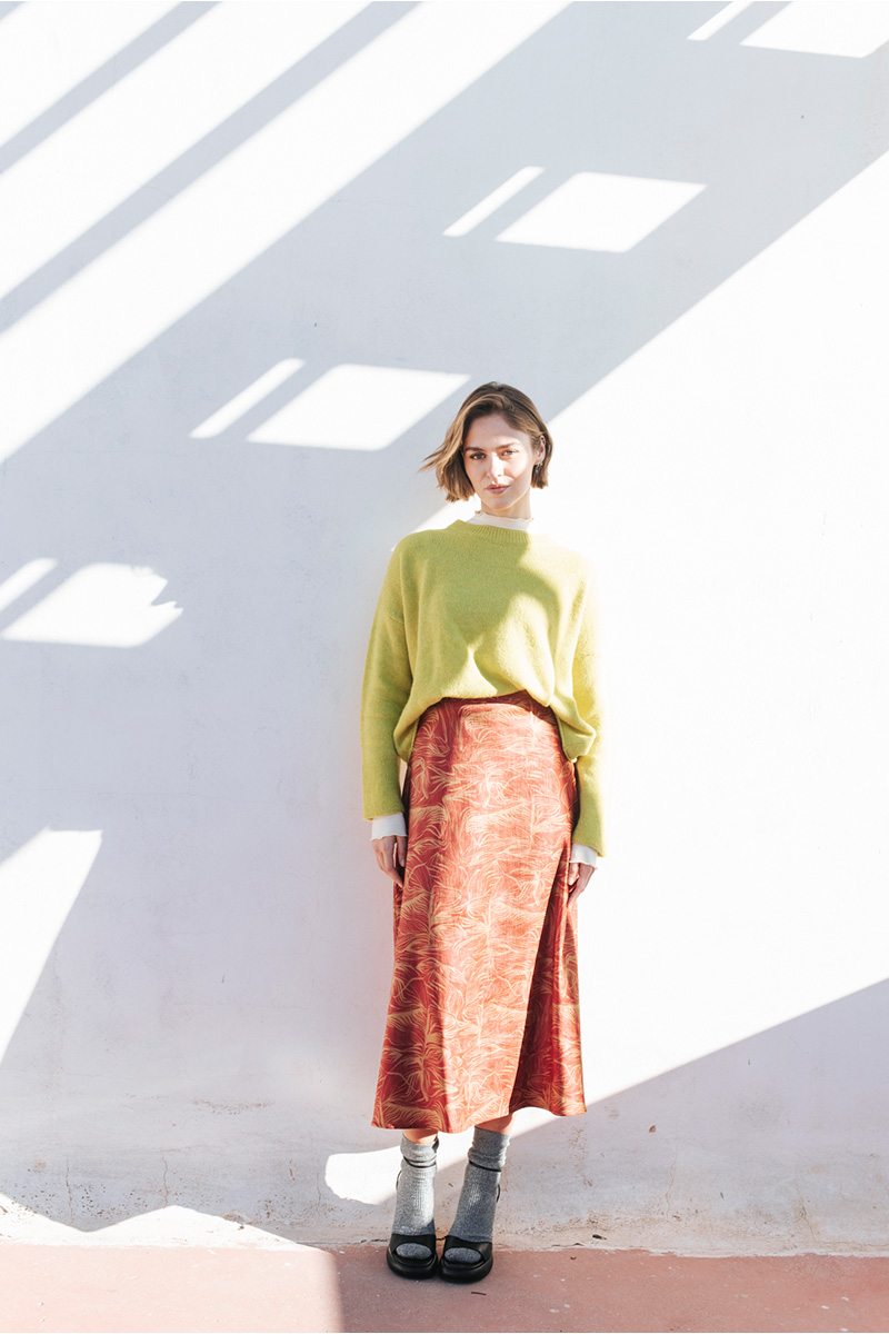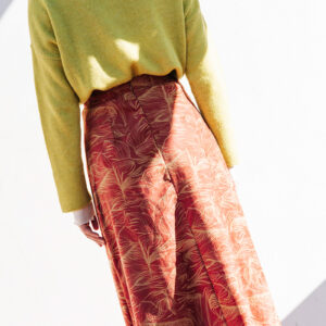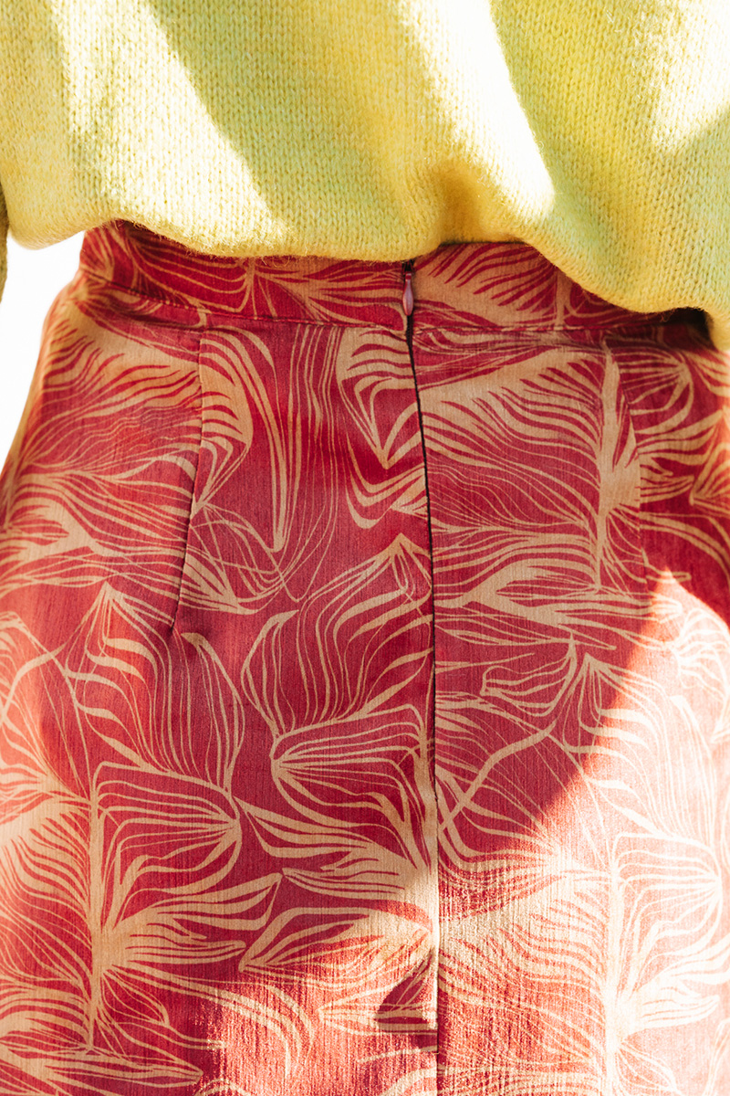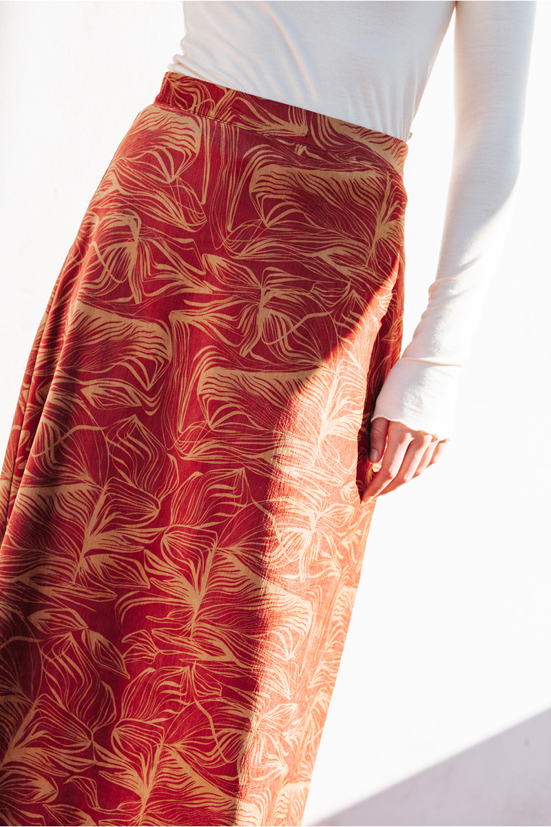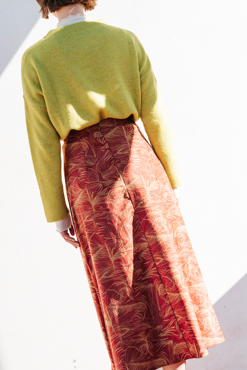 Midi wide printed skirt. Back fastening with concealed zipper.