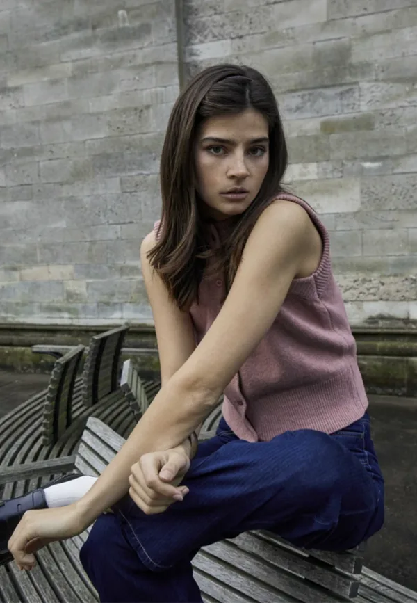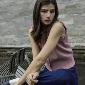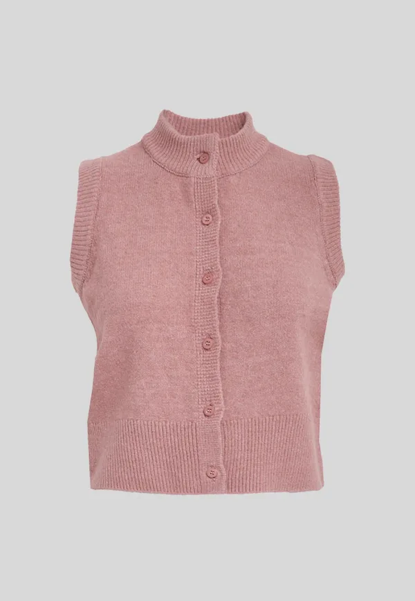 DESIRES DSJoy Knit Vest in Zephyr Rose colour has a closed neckline and button closure.