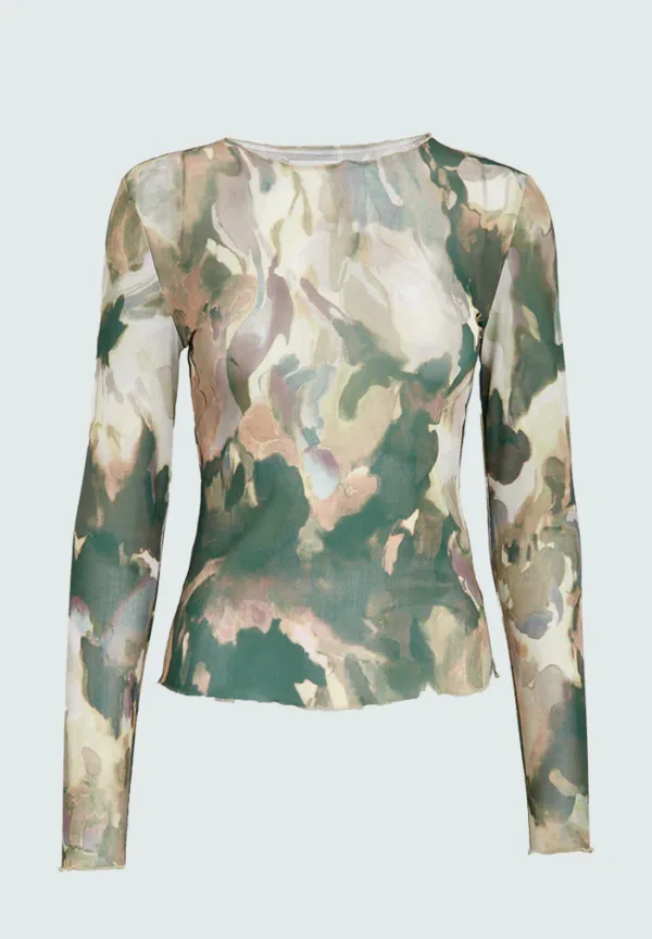 DESIRES DSKacey Mesh Top Print in thyme green colour print.