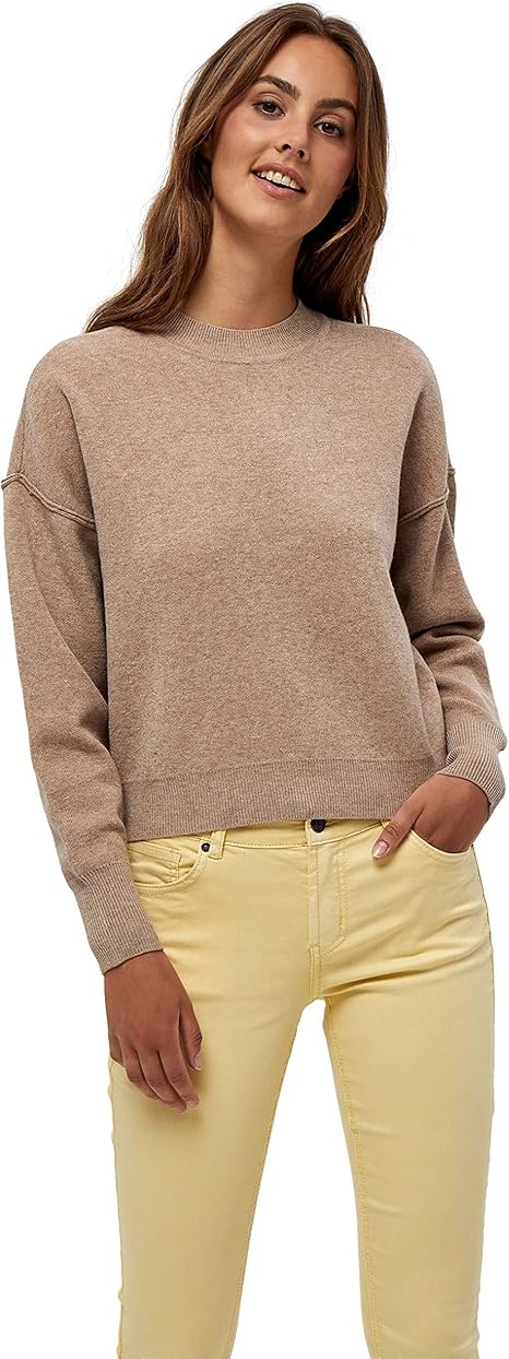 Desires Gabi Pullover has a round neck (boat neck) in warm sand colour and viscose-mix fabric.