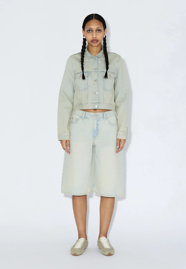 DR DENIM bree shorts in stream pale vintage worn colour.