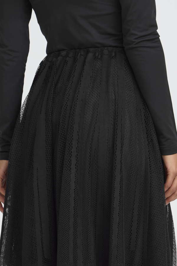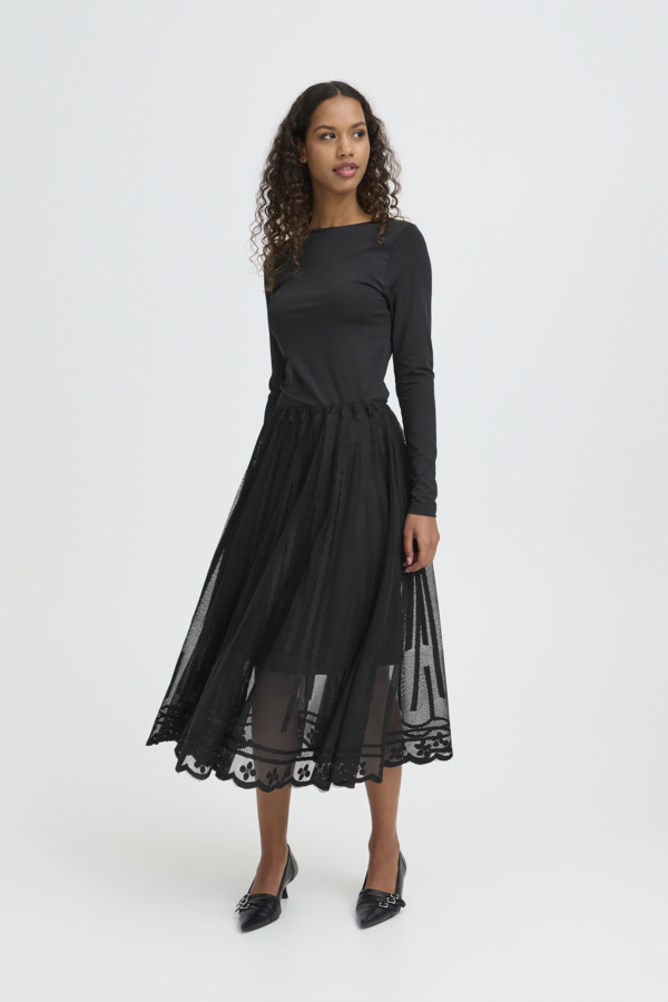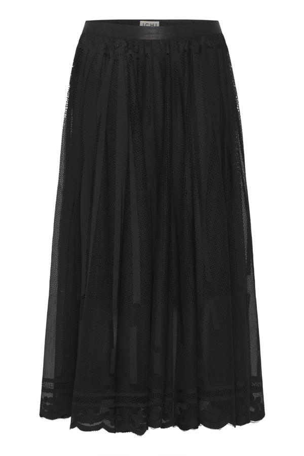 ICHI Ihleonce tulle skirt with lace details, elastic waist and loose fit in black colour.