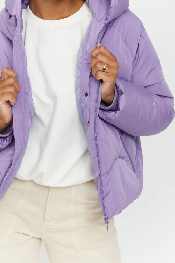 The Dana Puffer Jacket by Mazine is the perfect companion for the cold days of the year. It is characterized by its wide, short fit, which gives you a casual, functional and trendy look. With an adjustable, hidden drawstring at the hem, you can adjust the fit as you like. The practical zipper pockets provide enough storage space for your belongings. The waterproof outer fabric, with a 5000mm water column, keeps you dry and protects against wind and rain. The high-quality fitting made of 100% recycled polyester guarantees an efficient thermal insulation. Concealed ribbed cuffs on the sleeves offer extra comfort and warmth. With a lockable inner pocket you have the opportunity to keep important things safe. Whether walking in the city or on the hiking trail towards the coast, with this jacket you are optimally equipped and look really stylish.