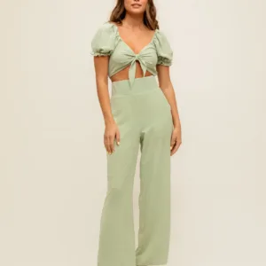 The color is pastel green and the fabric has structured dots in it.