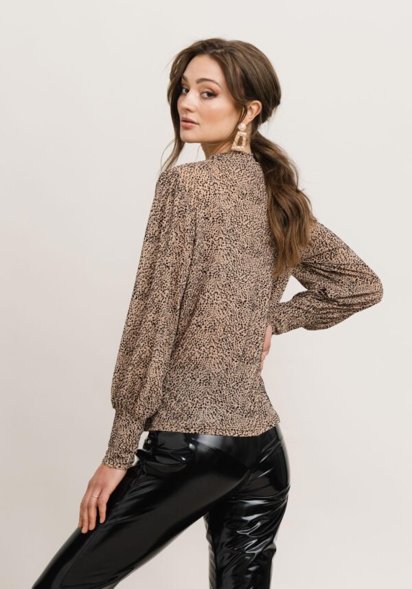 RUT&CIRCLE Paulina Puff Top | Beige / Black Dot