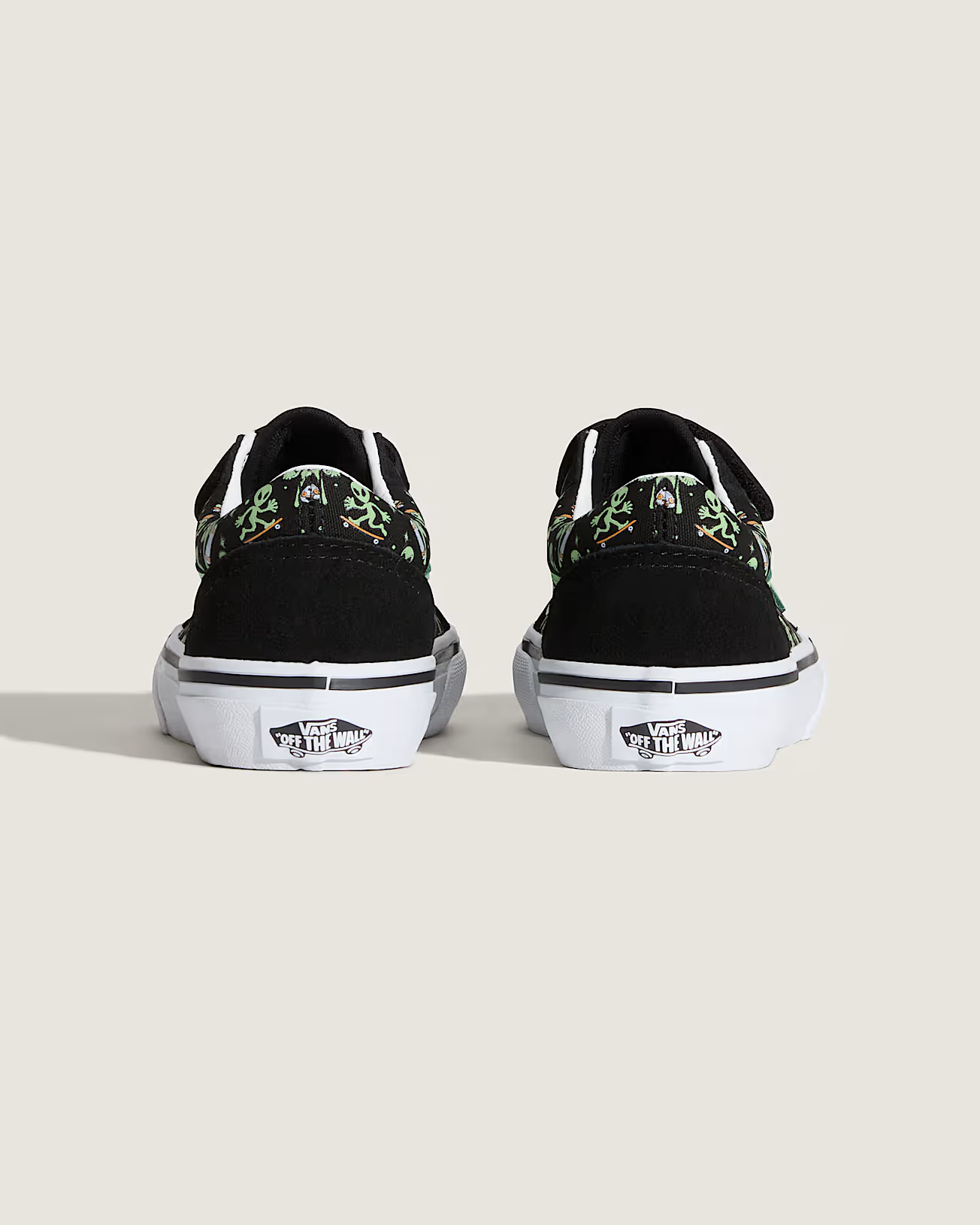 The Kids Old Skool V brings the glow with alien graphics that shine in the dark—and a Sidestripe that lights up the night. Finished with easy hook-and-loop straps and durable suede details, this reworked classic is built for everyday out-of-this-world adventures.